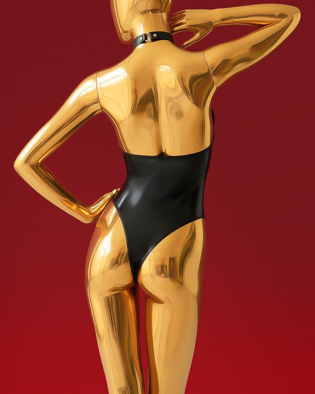 - Harness-style bodysuit with push-up support